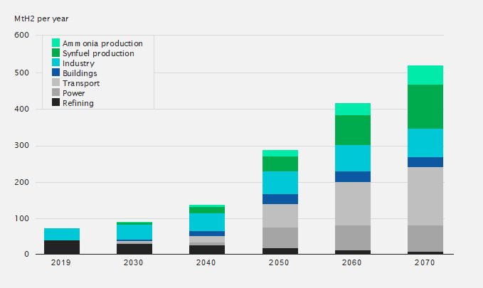 PROJECTED GLOBAL HYDROGEN DEMAND BY SECTOR